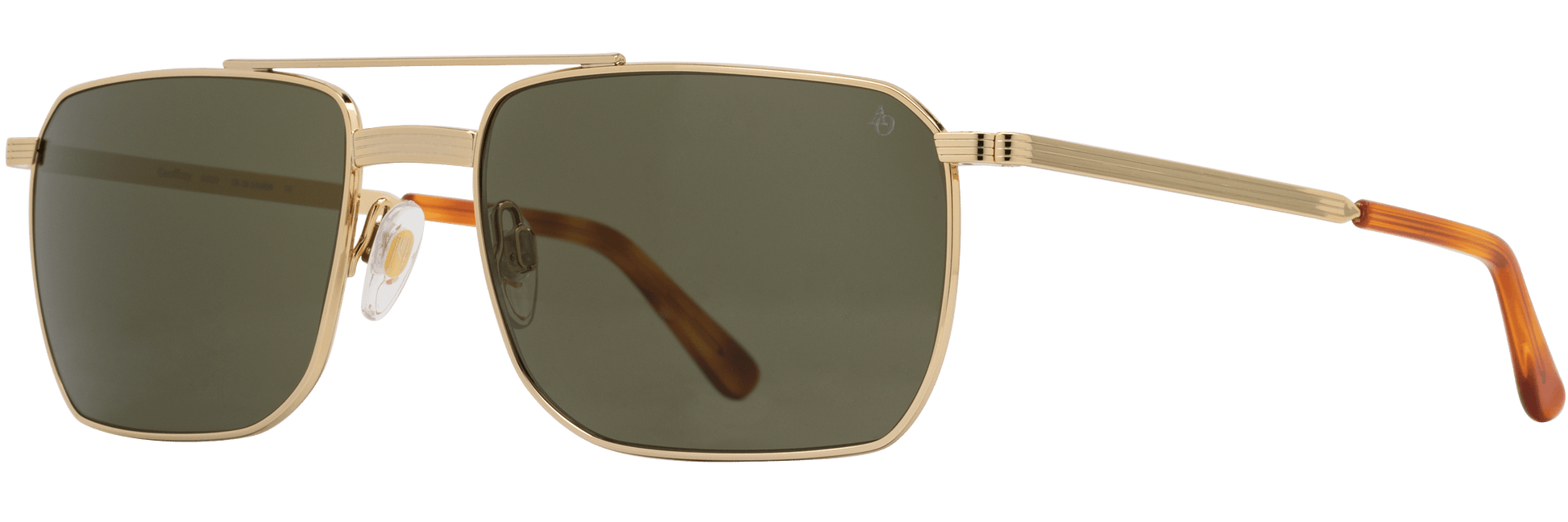 Geoffrey rounds out AO's aviator assortment with a shallower shape, designed to fit more faces. Etched channeling and softened angles offer up a modern take on the most classic sunglass style.