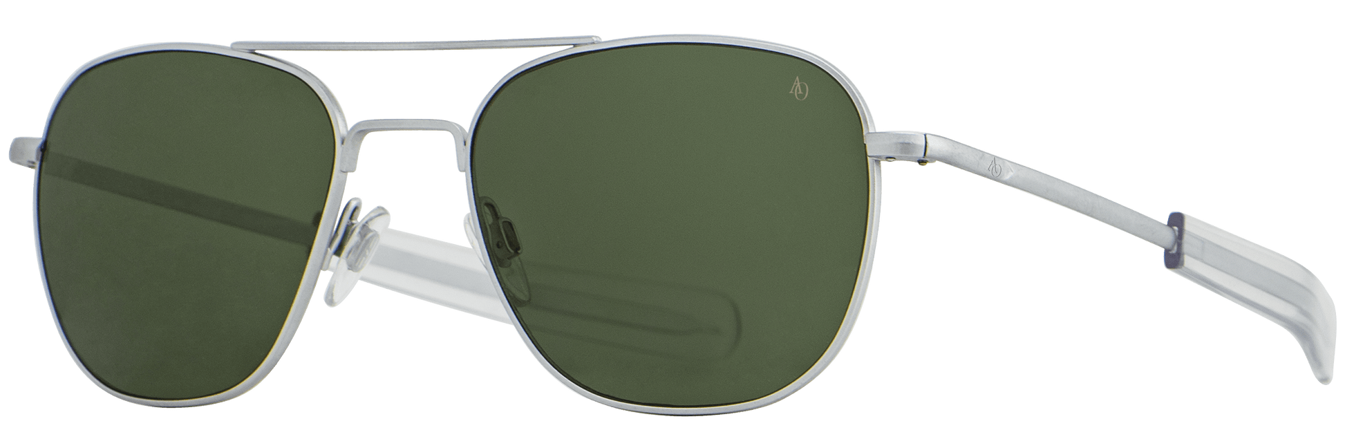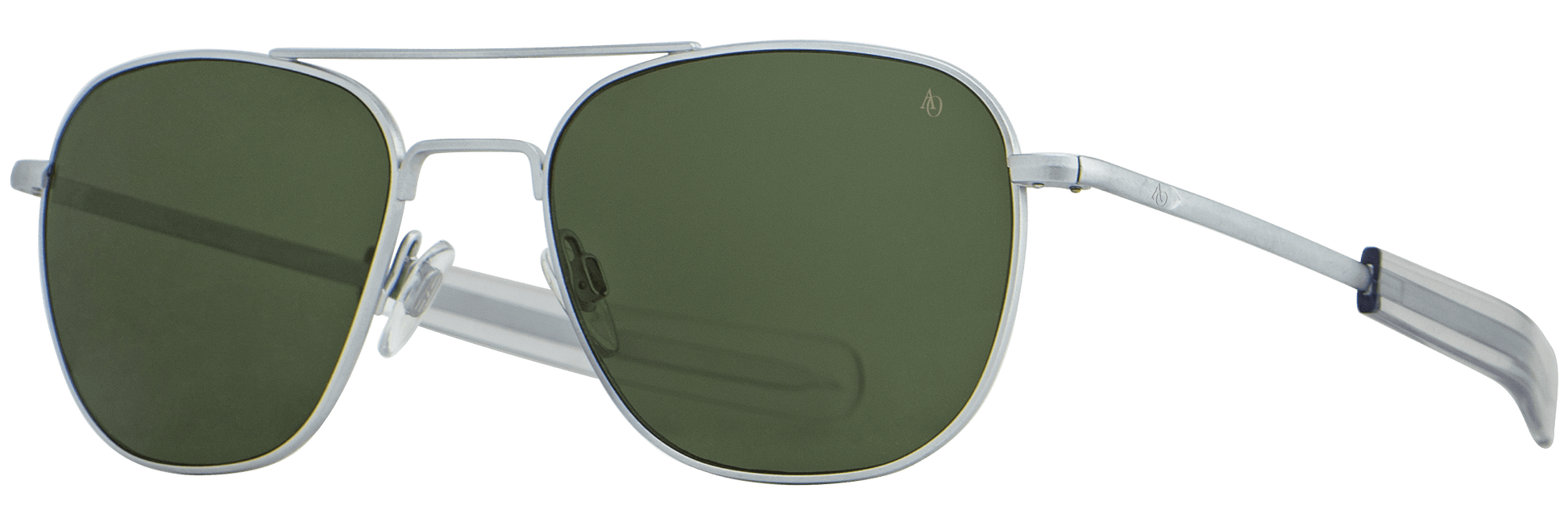 The Original Pilot has been a favorite of US military pilots and NASA astronauts from the Mercury, Gemini, and Apollo missions since 1958. The 23K gold plated aviator sunglasses are engineered to rigid military specifications for a look that truly lasts. All American Optical Original Pilot sunglasses are made in the USA from the finest global components. These non-polarized aviators with Calobar green nylon lenses offer an unparalleled balance between lightweight comfort and quality optics. Bayonet temples also provide comfort and style. Wear these timeless gold pilot sunglasses for life. Size 52-20-140 mm fits narrower faces.
